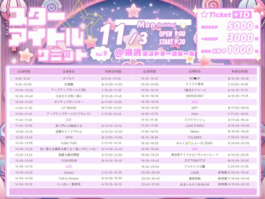 ■当日チケット:各種+1,000円